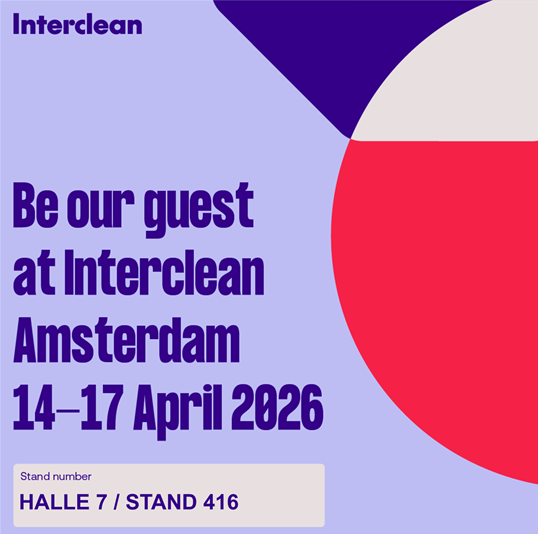 Melden Sie sich jetzt über das Messeportal an und besuchen Sie uns auf der INTERCLEAN in Amsterdam!“